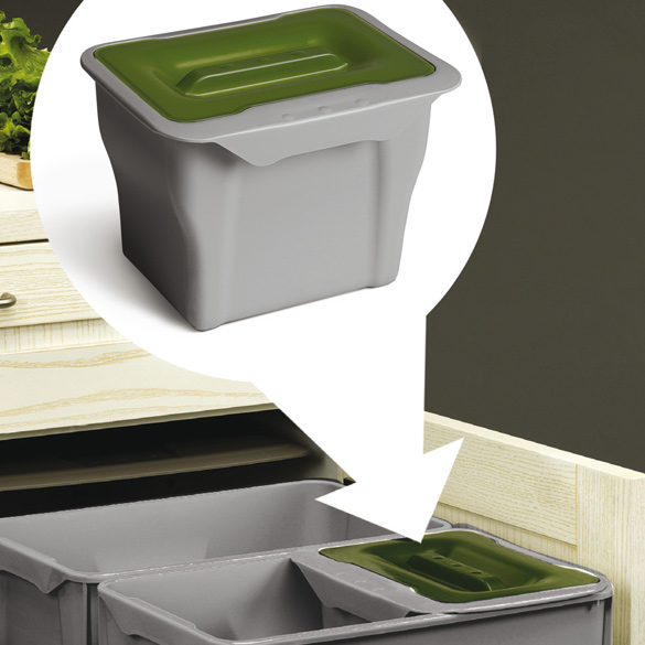 The waste bins can be also equipped with a small handy multi-purpose waste bin, ideal for stowing sponges and small objects and to facilitate the organic waste collection (Art. 557).
