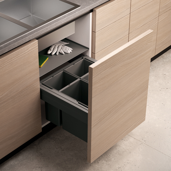Capacity: two bins 29lt capacity each and two bins 8lt capacity each.