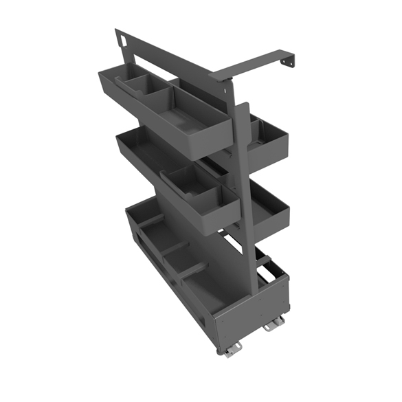 Sous-Chef is the latest innovative solution from Gollinucci designed to organize internal kitchen spaces. Equipped with adjustable compartments, the product allows for easy access for all cooking ingredients, accessories and cutlery. In addition to orion grey, the product is also available with a knife holder (in walnut finish), and can be used in cabinets from 150mm-600mm. The product is suitable both for cabinets with standard doors and for the most common types of drawer (Blum®, Grass®, Hettich®, FGV®…).