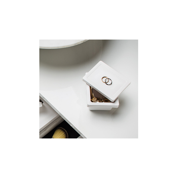 Pratica scatola porta-oggetti ideale per tenere a portata di mano i prodotti bagno di maggiore utilizzo.
