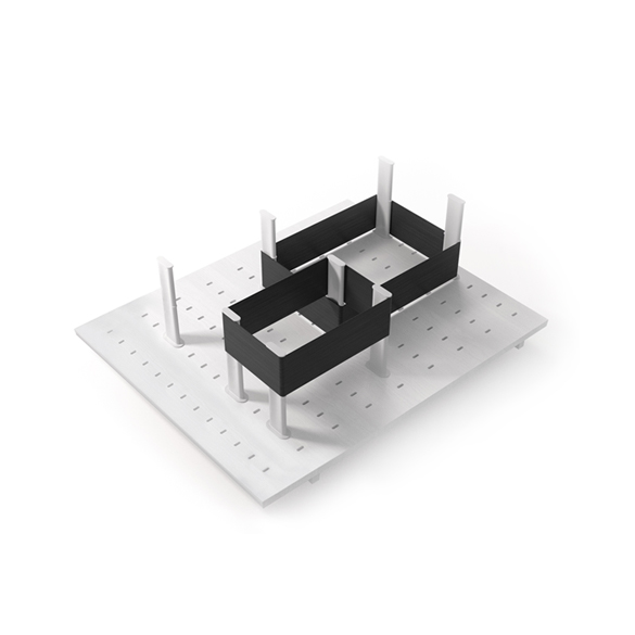 Art. 1360: organizzatore di spazio per cestone con fondo in legno forato, dotato di 16 elementi divisori e 3 fasce eleastiche.